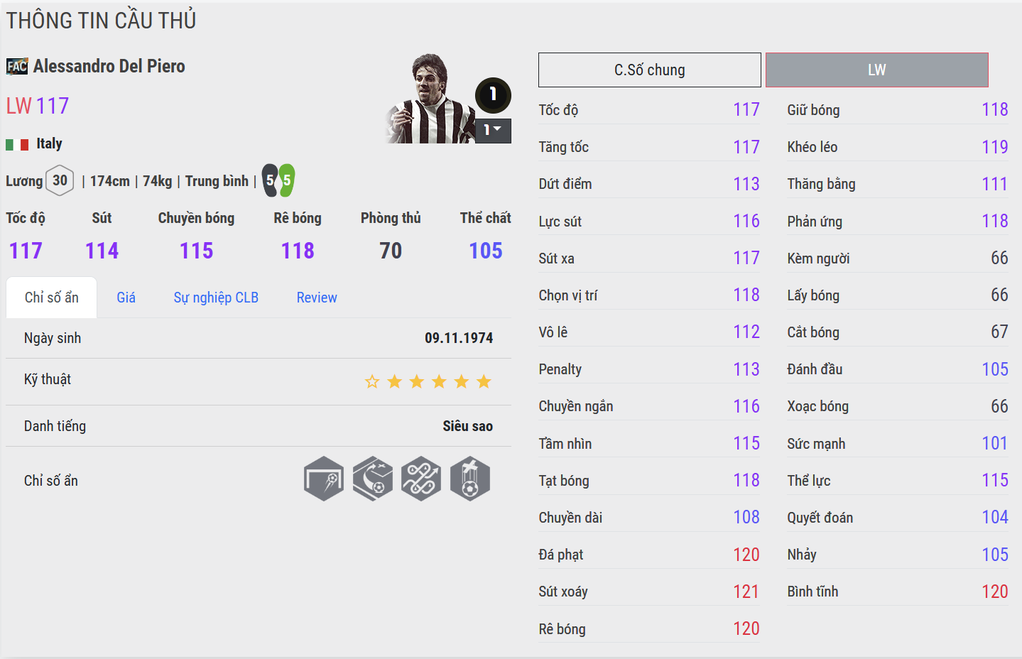 Dứt điểm chính là điểm sáng lớn nhất của Del Piero FAC. Những cú cứa lòng chân phải hoặc chân trái từ rìa vòng cấm mang độ khó rất cao, lực và quỹ đạo bóng cực kỳ “ngọt”. Del Piero xử lý bóng gọn gàng, ra chân nhanh và luôn tạo cảm giác an tâm trong các tình huống đối mặt khung thành.