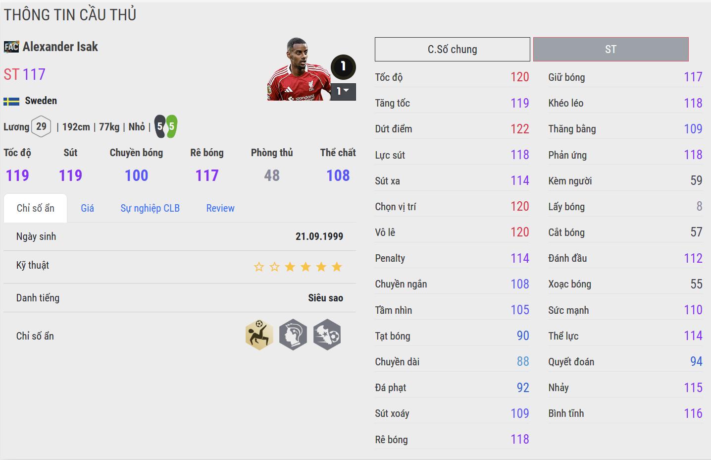 Khả năng tì đè của Isak FAC ở mức khá, không quá áp đảo như những trung phong thuần sức mạnh. Anh giữ bóng ổn nhờ sải chân dài và khả năng che chắn thông minh, nhưng sẽ hiệu quả hơn nếu tận dụng di chuyển và xoay người thay vì va chạm trực diện quá nhiều.