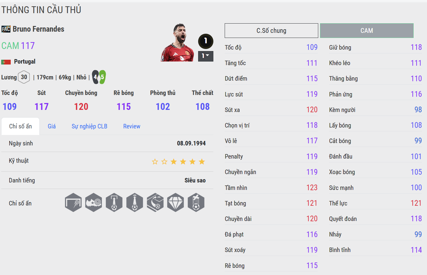 Bruno Fernandes là hiện thân của tinh thần chiến đấu và sự sáng tạo không ngừng nơi tuyến giữa – một thủ lĩnh đích thực trong lối chơi của Manchester United. Sở hữu nhãn quan chiến thuật sắc bén cùng khả năng chuyền bóng táo bạo, Bruno luôn tìm kiếm những phương án tấn công trực diện, sẵn sàng mạo hiểm để tạo ra đột biến.