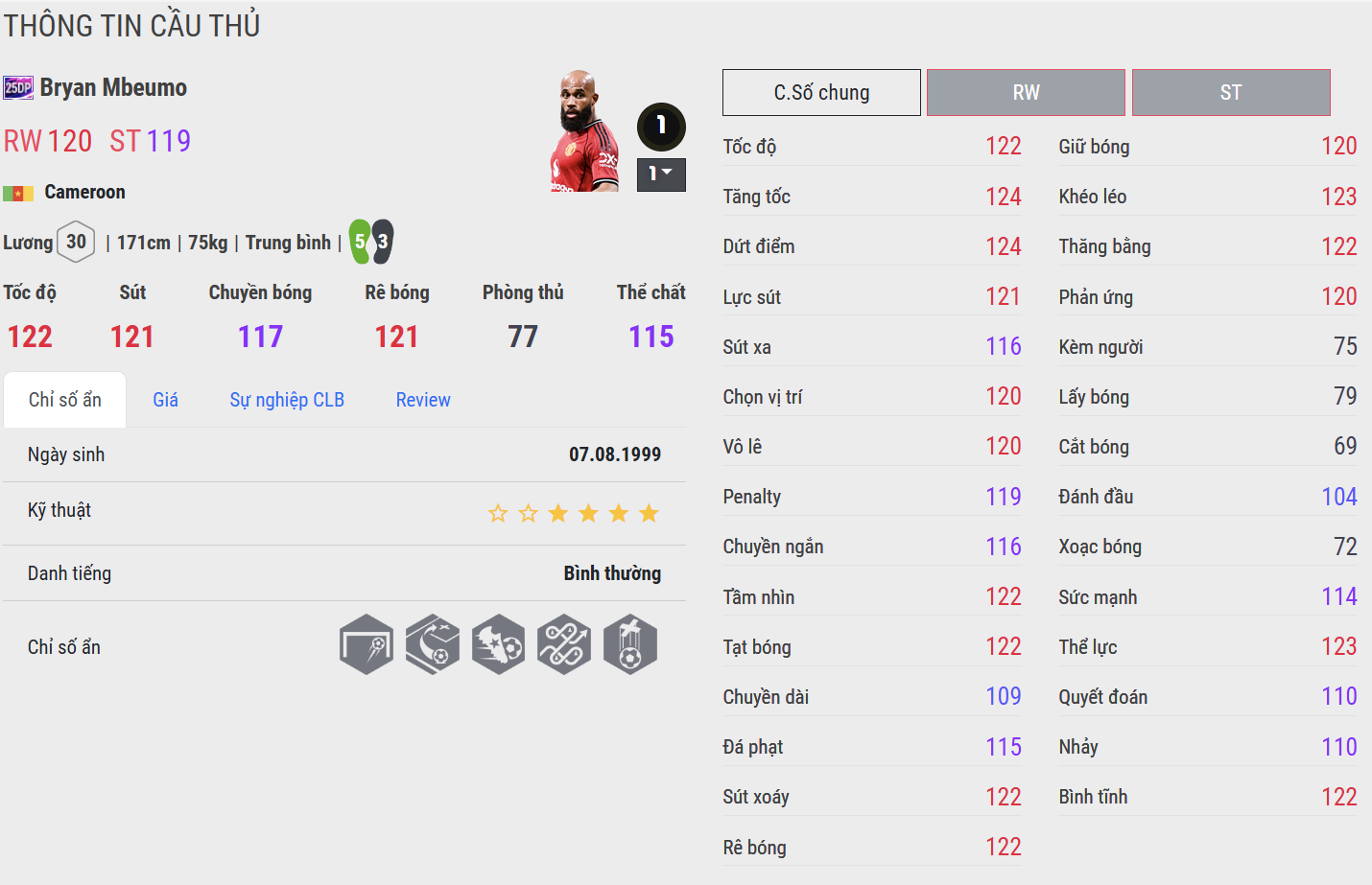 Ở Mbeumo, người ta thấy hình ảnh của một cầu thủ hiện đại: không ngại pressing, di chuyển thông minh và luôn biết cách tạo khoảng trống cho đồng đội. Trong FC Online, Mbeumo là một quân bài cực kỳ linh hoạt trong sơ đồ tấn công của Manchester United, khi anh có thể đảm nhiệm tốt vai trò RW, LW hoặc CF.