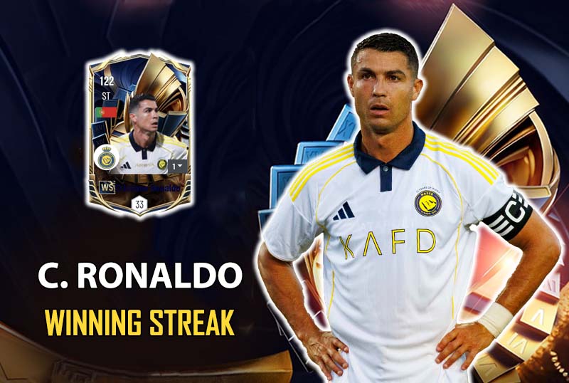 Cristiano Ronaldo mùa thẻ Winning Streak (WS) mang hình ảnh một sát thủ thượng hạng, hội tụ đầy đủ những phẩm chất của một tiền đạo hàng đầu: tốc độ, sức mạnh, kỹ thuật và bản năng săn bàn. Đây là mùa thẻ tái hiện đỉnh cao của CR7, nơi anh có thể tạo khác biệt chỉ với một khoảnh khắc.