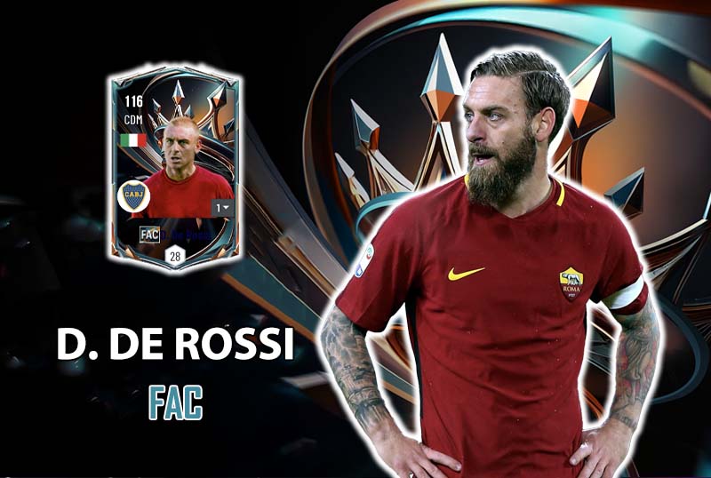 De Rossi FAC không sở hữu tốc độ cao, nhưng khả năng di chuyển hợp lý và chọn vị trí tốt giúp anh luôn xuất hiện đúng thời điểm. Tốc độ ở mức vừa phải, đủ để bọc lót, áp sát trong khu vực trung tuyến mà không bị hụt nhịp so với thế trận chung.