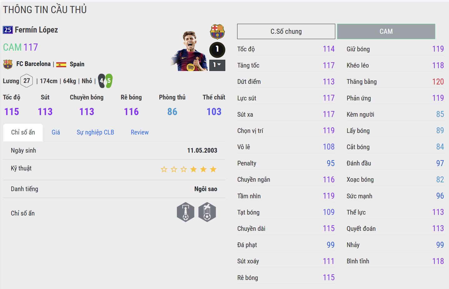 Fermin Lopez là một trong những tiền vệ trẻ giàu năng lượng của FC Barcelona. Anh nổi bật với tinh thần thi đấu nhiệt huyết, khả năng di chuyển rộng và sự tích cực trong cả tấn công lẫn pressing.