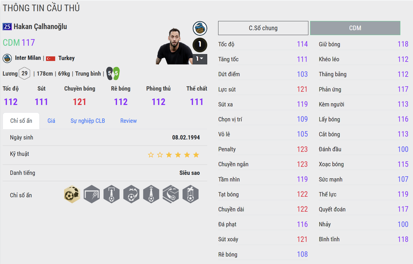 Hakan Calhanoglu là mẫu tiền vệ trung tâm nổi bật với kỹ thuật cá nhân tinh tế và khả năng sút xa đầy uy lực. Trong màu áo Inter Milan, anh giữ vai trò quan trọng ở tuyến giữa nhờ khả năng điều tiết lối chơi và tạo ra những đường chuyền mang tính đột biến.