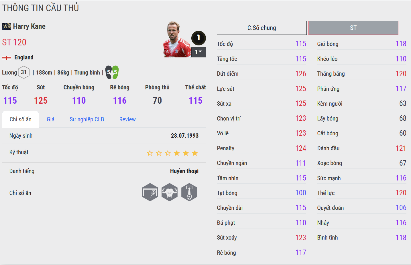 Kane WS không phải mẫu tiền đạo chạy nhanh, và đó cũng không phải điểm anh dựa vào. Tốc độ của anh chỉ ở mức khá, nhưng bù lại, Kane chọn vị trí và thời điểm bứt phá cực khôn ngoan. Anh luôn xuất hiện đúng lúc trong vòng cấm, tận dụng khoảng trống vừa đủ để tung ra cú dứt điểm. Khi bạn chơi lối bóng dài hoặc QW, Kane không vượt hậu vệ bằng tốc độ mà bằng khả năng đọc tình huống – di chuyển chậm mà chắc, hiệu quả hơn là bứt phá.
