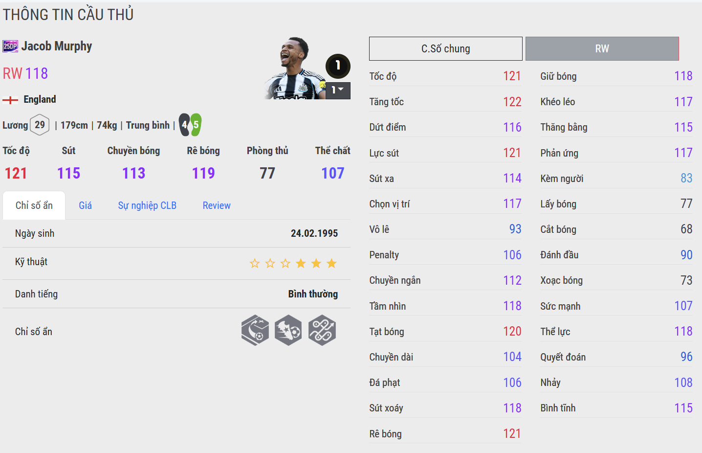 Dù không phải ngôi sao sáng nhất đội hình, Jacob Murphy lại là kiểu cầu thủ mà mọi HLV đều muốn có: chăm chỉ, kỷ luật, ổn định và sẵn sàng đảm nhận bất kỳ vai trò nào vì tập thể. Anh là minh chứng cho giá trị của sự bền bỉ và tinh thần chiến đấu – những phẩm chất đang giúp Newcastle hồi sinh mạnh mẽ trong kỷ nguyên mới.