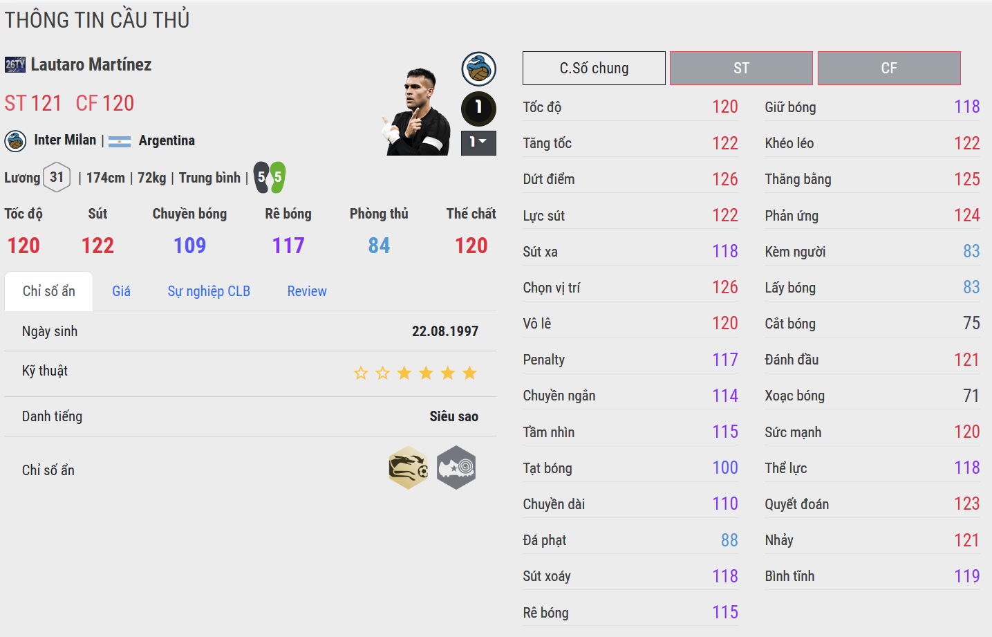 Dứt điểm chính là điểm mạnh nhất của Lautaro Martínez 26TOTY. Các pha sút trong vòng cấm, đặt lòng, sút một chạm hay dứt điểm khi bị áp sát đều có độ ổn định cao. Anh không cần quá nhiều không gian để ra chân, chỉ cần nửa nhịp trống là bóng đã nằm gọn trong lưới – đúng chất của một “poacher” hiện đại.