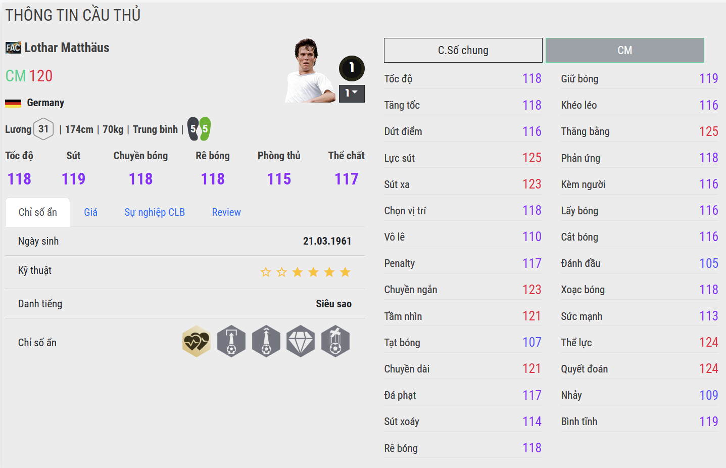 Đây là một trong những điểm mạnh nhất của Matthäus FAC. Thể hình gọn nhưng cực kỳ chắc, cảm giác va chạm “đằm” khiến đối thủ rất khó tì hoặc đẩy ngã anh. Khi chạy, độ lỳ tăng lên rõ rệt: vừa giữ thăng bằng tốt, vừa có thể húc ngược lại đối thủ. Tì đè ở mức rất cao, tương đương với những CM/DM top meta.