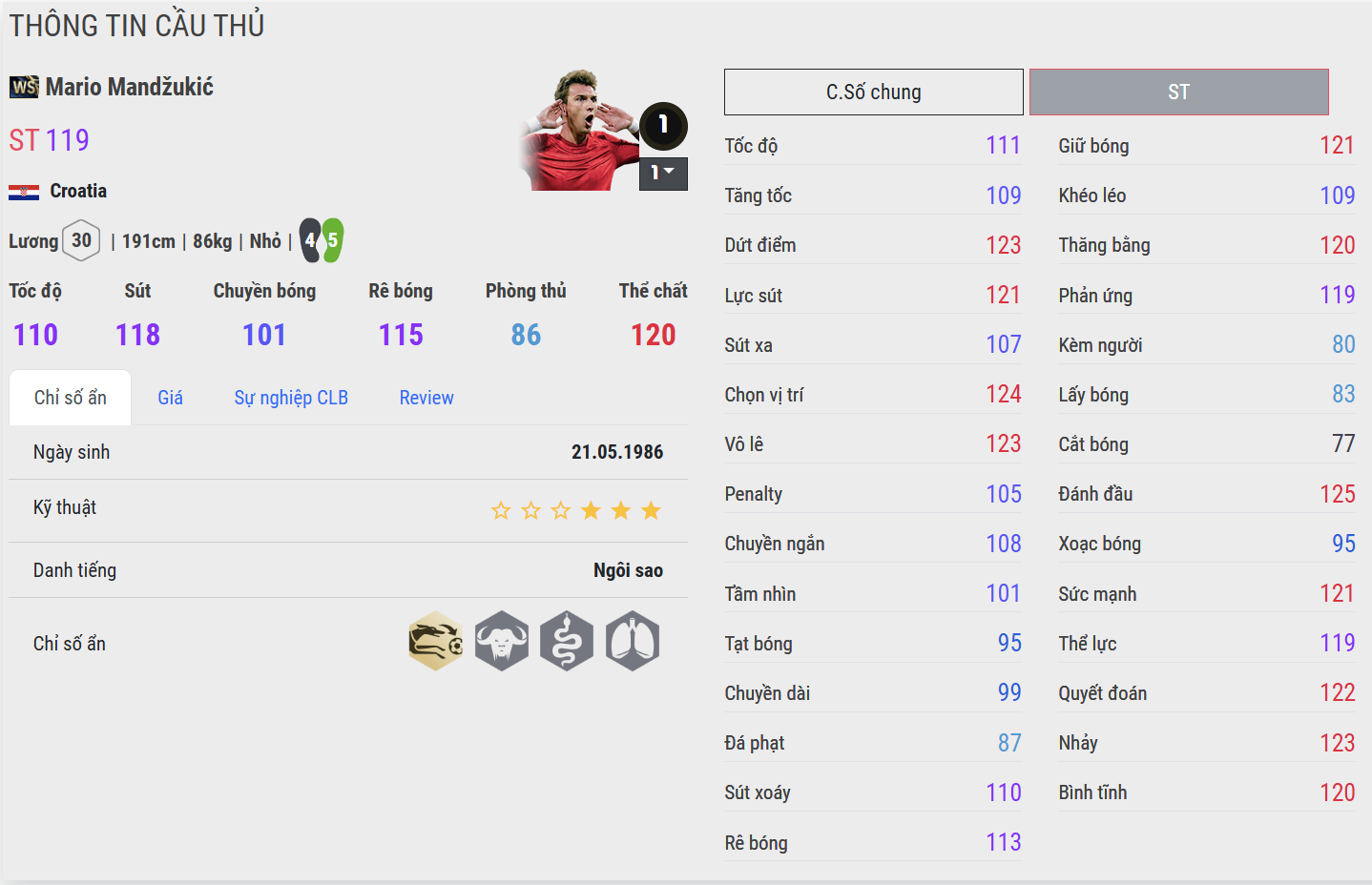 Đây là điểm khiến Mandzukic WS khác biệt. Anh không chỉ khỏe, mà còn biết dùng sức một cách khôn ngoan. Những pha tì vai, che bóng hoặc tranh chấp trên không đều mang lại cảm giác áp đảo. Với thể hình 1m90, nặng 85kg, Mandzukic gần như “đè bẹp” mọi hậu vệ trong các tình huống va chạm tay đôi. Cảm giác thăng bằng tốt giúp anh không dễ ngã, ngay cả khi bị truy cản từ phía sau. Ở những trận đấu căng, Mandzukic chính là kiểu cầu thủ mà đối thủ ngại va chạm nhất.