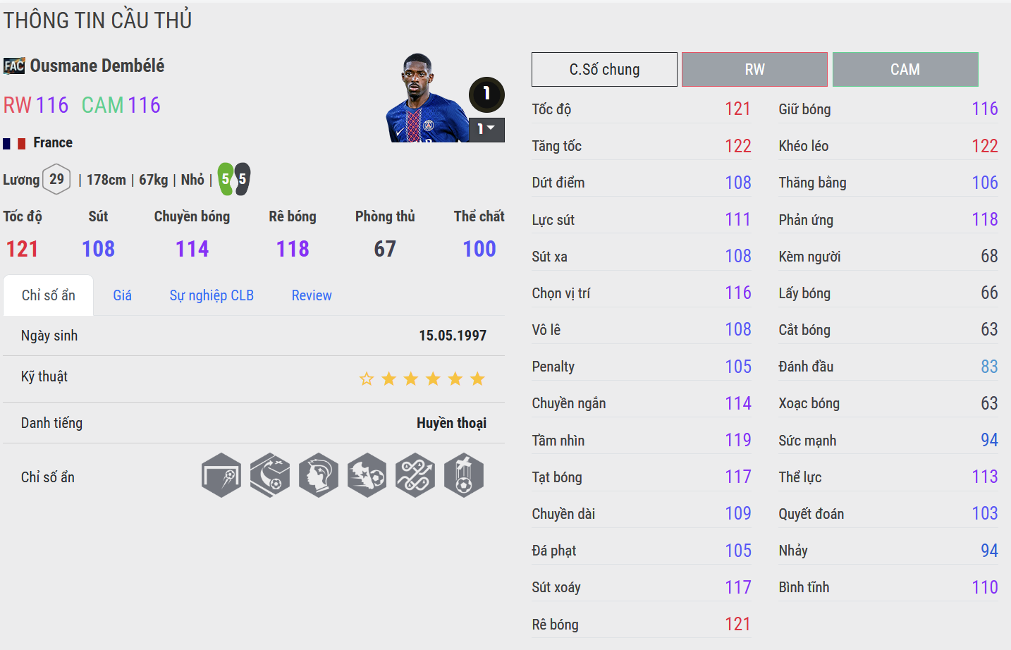Ousmane Dembélé là mẫu cầu thủ chạy cánh mang đậm chất ngẫu hứng và bùng nổ, người có thể xoay chuyển cục diện trận đấu chỉ bằng một pha xử lý cá nhân. Sở hữu tốc độ xé gió, kỹ năng rê bóng linh hoạt cùng khả năng chơi tốt bằng cả hai chân, Dembélé luôn là mối đe dọa thường trực với mọi hàng phòng ngự.