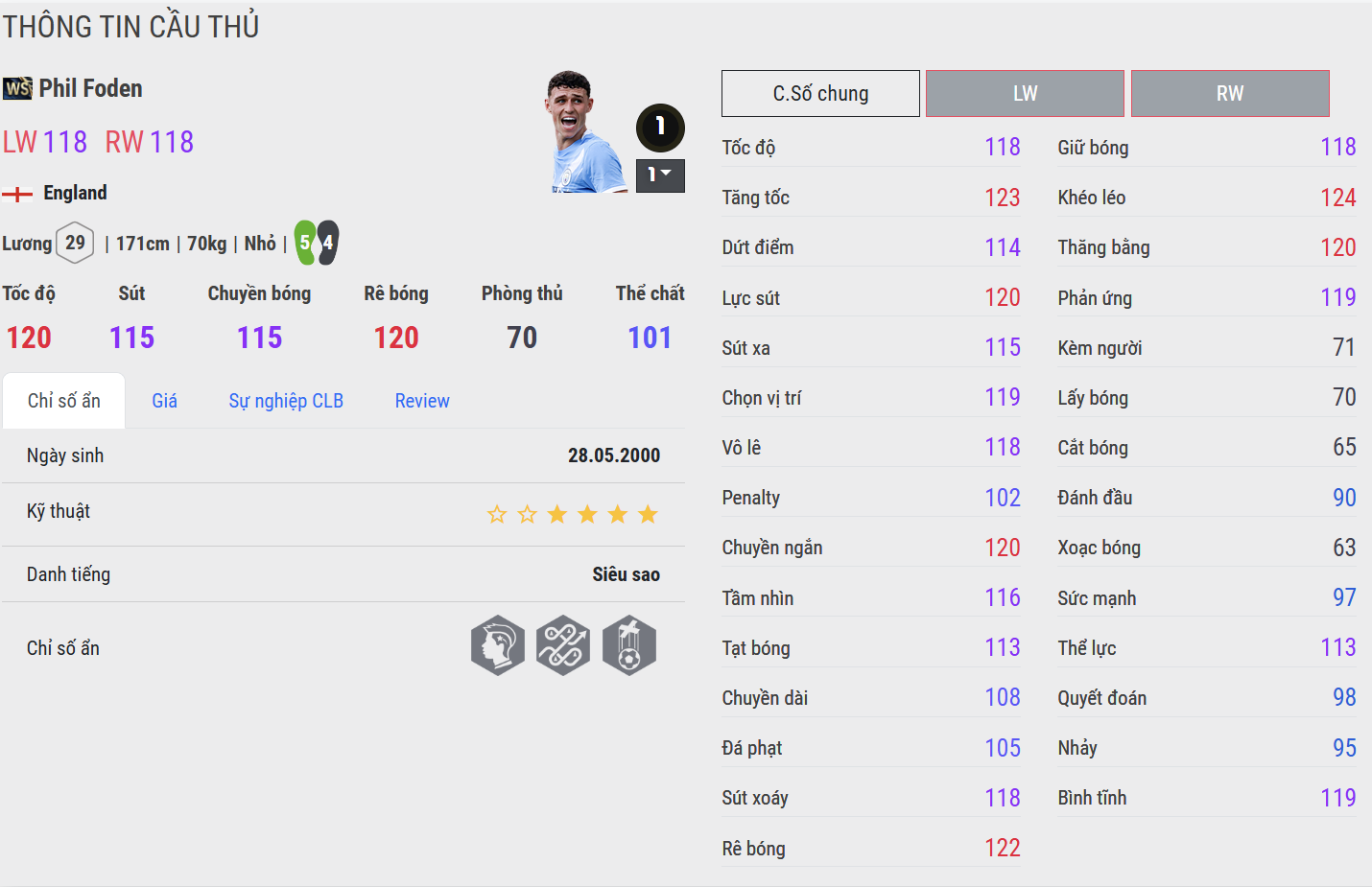 Trong FC Online, Foden là lựa chọn hoàn hảo cho những ai ưa chuộng lối chơi kỹ thuật, linh hoạt và giàu cảm xúc. Anh đại diện cho thế hệ cầu thủ hiện đại – nơi sự sáng tạo, tốc độ và bản lĩnh thi đấu hòa quyện thành một.