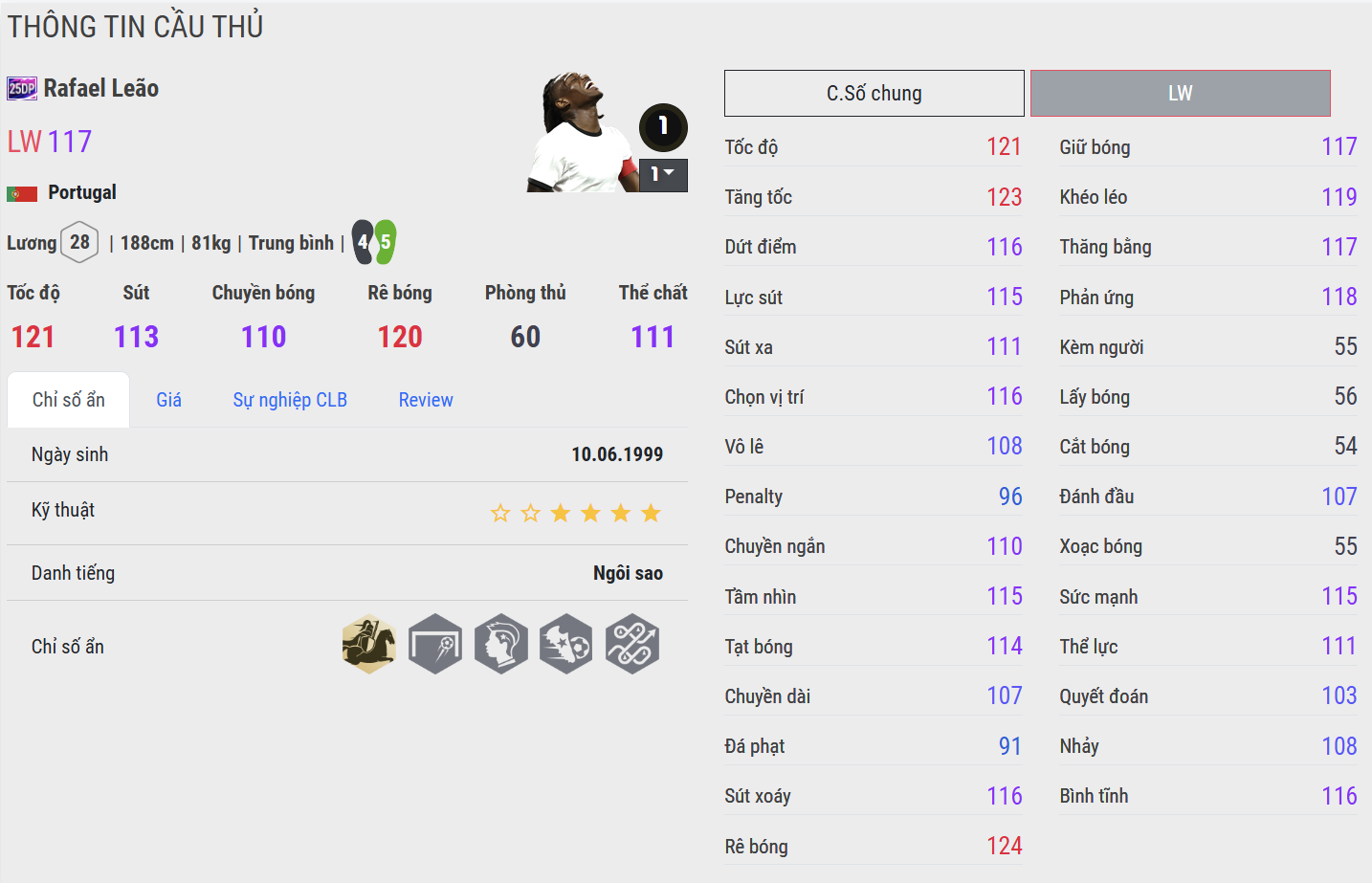 Leão 25DP sở hữu tốc độ đầu rất tốt, nhưng điểm làm anh nguy hiểm hơn là quãng đẩy bóng dài cực khó theo kịp. Khi đạt đà, Leão “cuốn” hậu vệ bằng sải chân dài và tốc độ dồn dập khiến đối phương gần như không thể áp sát. Ở những pha phản công, Leão là người mở đường hoàn hảo – mạnh, nhanh và đầy uy lực.