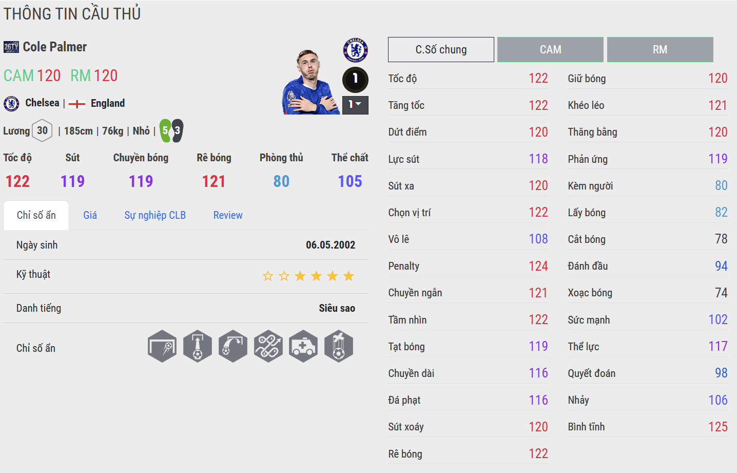 Khả năng chuyền bóng của Palmer 26TOTY rất đáng tin. Các đường chọc khe, nhả bóng, phối hợp tam giác ở tốc độ cao đều cho cảm giác mượt và chính xác. Anh không phải mẫu nhạc trưởng điều tiết toàn đội, nhưng trong phạm vi tấn công, Palmer là cầu nối hiệu quả giữa tuyến giữa và hàng công.