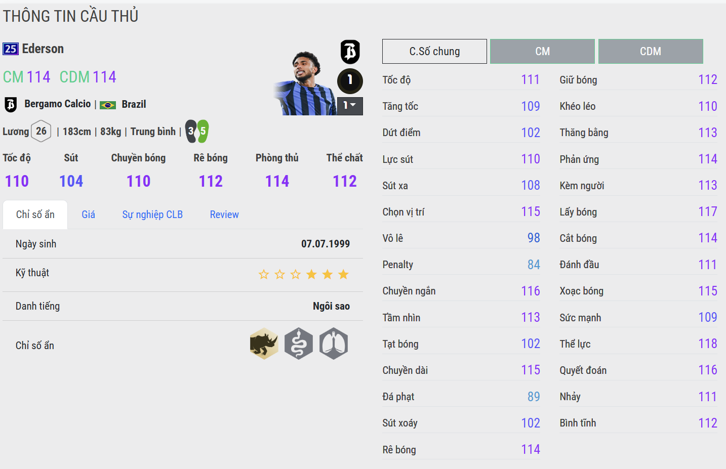 Ederson (Atalanta) là mẫu tiền vệ trung tâm hiện đại - mạnh mẽ, bền bỉ và giàu năng lượng, luôn mang đến sự cân bằng cho tuyến giữa. Trong màu áo Atalanta, Ederson nổi bật với khả năng hoạt động rộng và cường độ thi đấu cao.