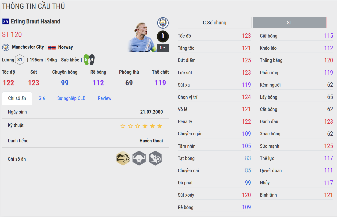 Khả năng rê bóng của Haaland 25UCL ở mức vừa phải. Trong không gian rộng, anh có thể đẩy bóng dài rồi tận dụng tốc độ và thể hình để vượt qua hậu vệ. Nhưng ở phạm vi hẹp, cảm giác xoay người khá nặng và không mượt. Không nên lạm dụng skill phức tạp với mẫu ST này.