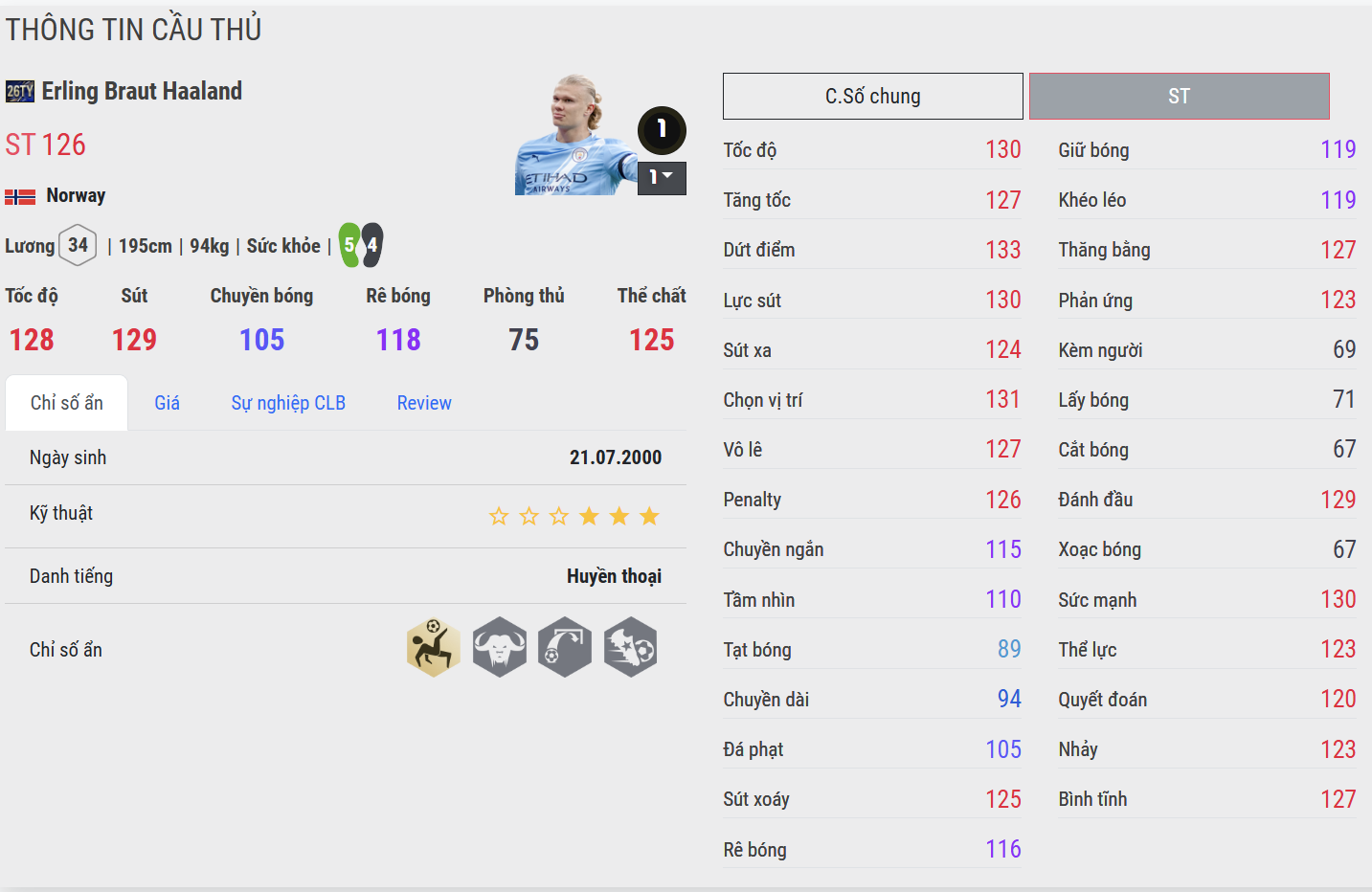 Khả năng chuyền bóng của Haaland 26TOTY không phải điểm nổi bật, nhưng hoàn toàn đáp ứng tốt vai trò làm tường và kết nối đơn giản. Những pha nhả bóng một chạm, chuyền ngắn cho tuyến hai đều khá gọn gàng. Anh không phải mẫu trung phong kiến thiết, mà là điểm kết thúc của các đợt tấn công.