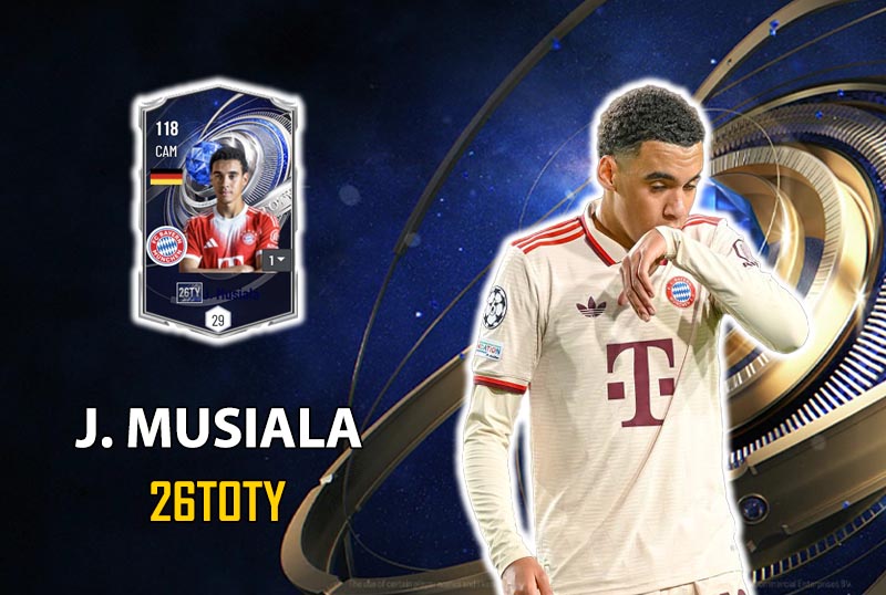 Khả năng dứt điểm của Musiala 26TOTY ở mức tốt với một tiền vệ tấn công. Sút lòng trong vòng cấm rất ổn, bóng đi hiểm và có độ cuộn khó chịu. Những pha cứa lòng góc xa cho cảm giác khá “ảo”. Tuy nhiên, anh không phải mẫu ST sát thủ. Khi bị áp sát mạnh, lực sút đôi lúc chưa đủ uy lực để xuyên phá hoàn toàn.