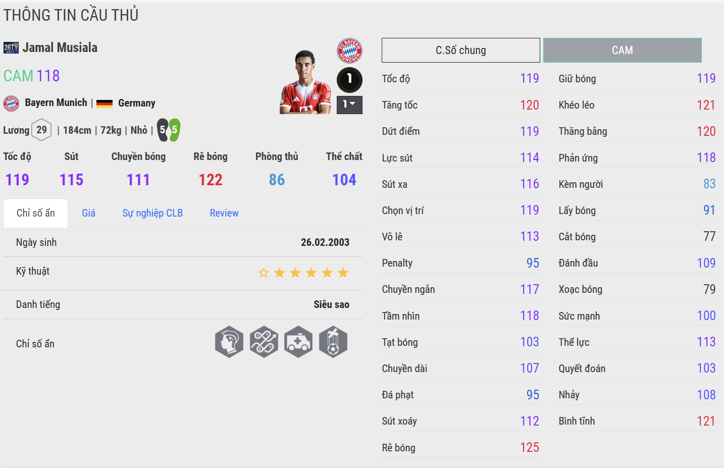 Musiala 26TOTY thực sự tỏa sáng ở khả năng rê bóng. Cảm giác điều khiển rất dính chân, đảo hướng nhanh và mượt. Những pha giữ bóng trong phạm vi hẹp gần như là “đặc sản”. Khi đối mặt 1vs1, anh có thể khiến hậu vệ mất phương hướng chỉ bằng vài nhịp xử lý nhẹ nhàng. Đây là mẫu cầu thủ cực kỳ hợp meta kiểm soát và kỹ thuật.