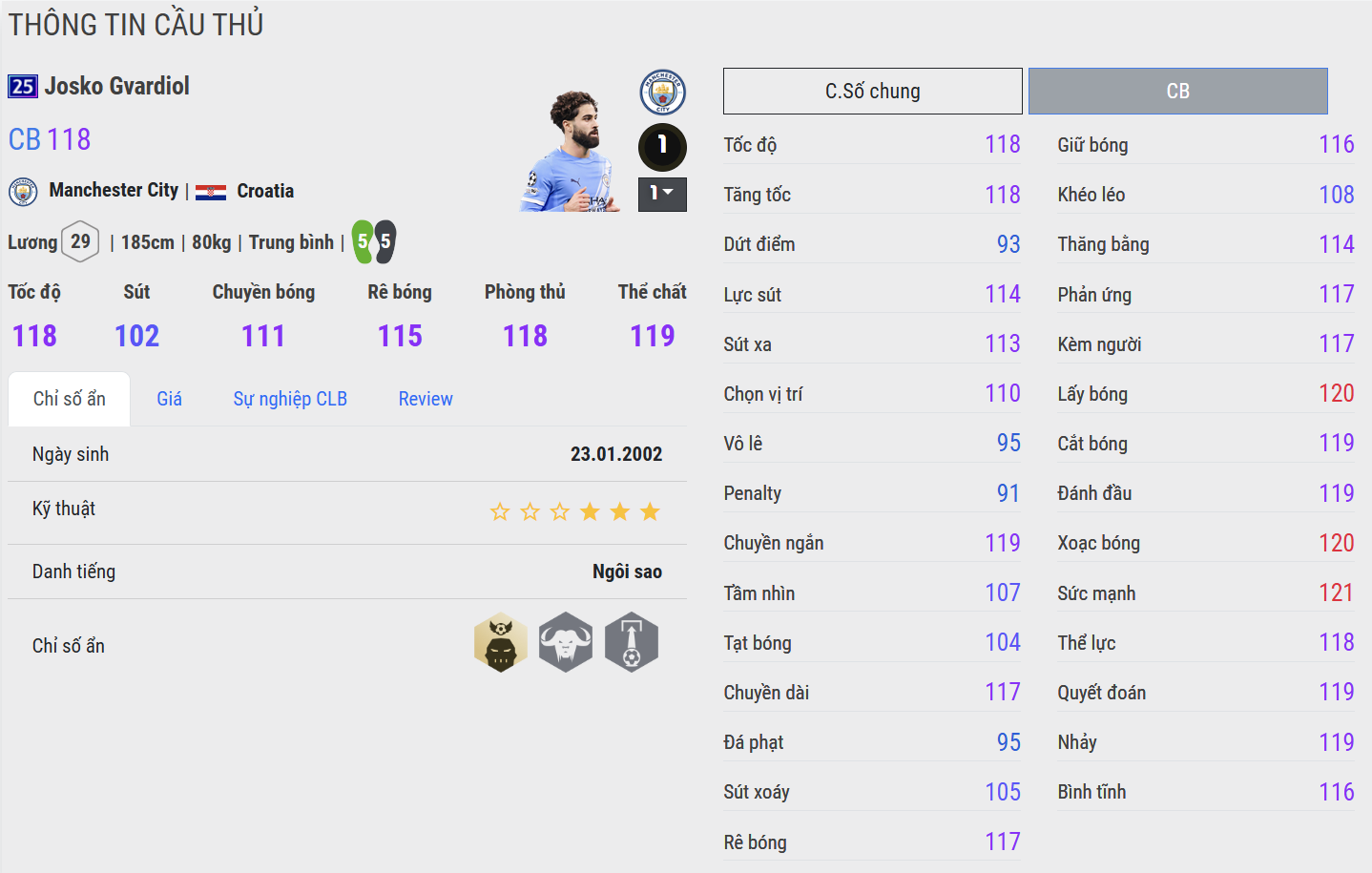 Điểm đặc biệt ở Gvardiol là phong cách thi đấu hiện đại: vừa là chốt chặn đáng tin cậy trước khung thành, vừa là trung vệ có thể tham gia xây dựng lối chơi. Sự điềm tĩnh cùng tư duy chiến thuật tốt giúp anh nhanh chóng trở thành một trong những nhân tố quan trọng trong hệ thống của Manchester City.