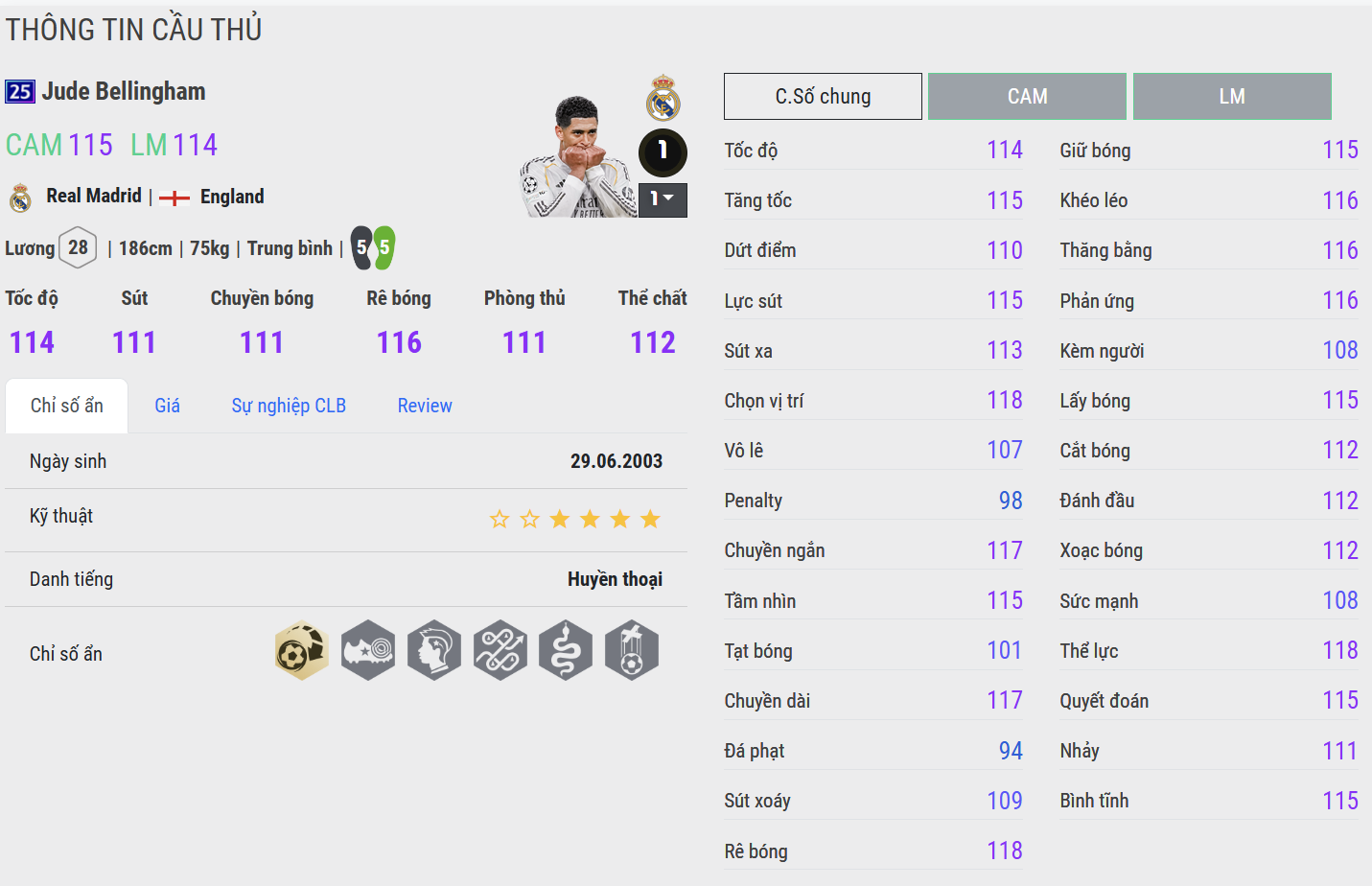 Khả năng chọn vị trí thông minh cùng những cú dứt điểm quyết đoán giúp anh thường xuyên ghi dấu ấn bằng bàn thắng – điều hiếm thấy ở một tiền vệ trung tâm. Với phong cách thi đấu mạnh mẽ nhưng không kém phần tinh tế, Bellingham mang đến cảm giác vừa chắc chắn vừa bùng nổ. Anh không chỉ là một tiền vệ, mà là một “động cơ toàn diện” – nơi mọi nhịp đập của trận đấu đều có dấu ấn của mình.
