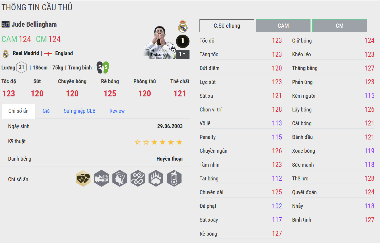 Anh vừa hỗ trợ phòng ngự hiệu quả, vừa sẵn sàng băng lên tấn công, xâm nhập vòng cấm và tạo ra những khoảnh khắc quyết định bằng các pha dứt điểm lạnh lùng. Điểm nổi bật nhất ở Bellingham nằm ở tinh thần thủ lĩnh và khả năng tỏa sáng trong những thời khắc then chốt.