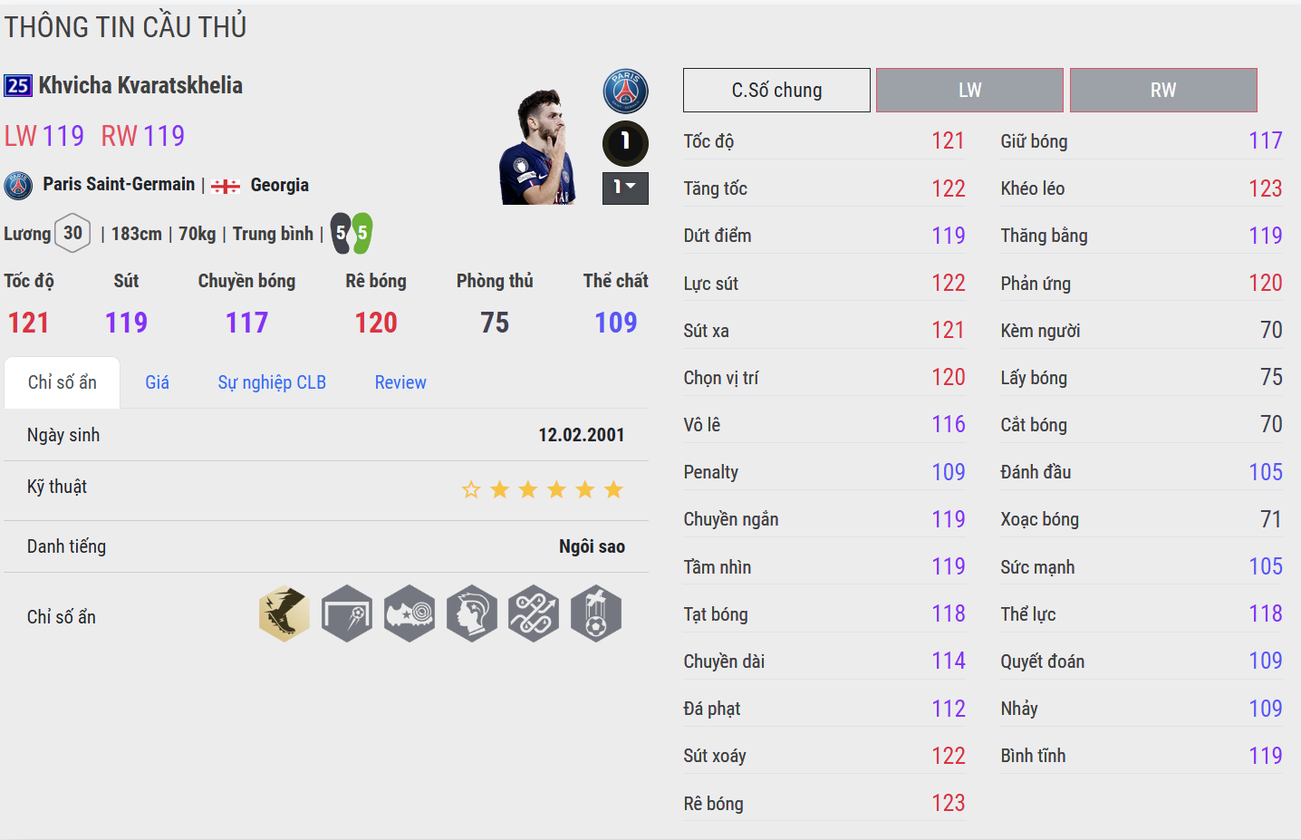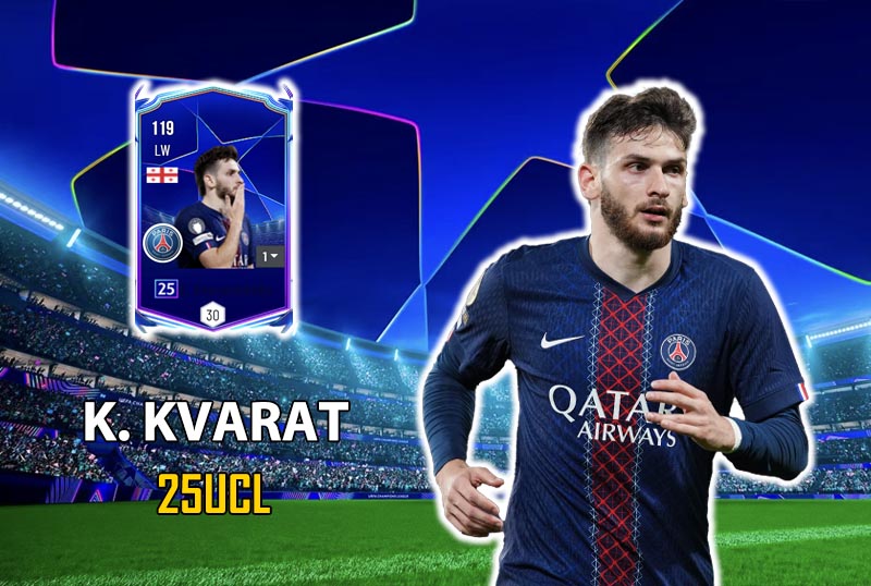 Kvaratskhelia 25UCL sở hữu tốc độ ở mức tốt. Tăng tốc quãng ngắn khá nhanh, đặc biệt khi đẩy bóng qua người rồi bứt lên. Trong những pha phản công, anh đủ nhanh để khai thác khoảng trống phía sau hậu vệ phải. Dù không phải “máy chạy” thuần tốc độ, nhưng sự linh hoạt giúp anh tạo cảm giác rất thanh thoát khi di chuyển.