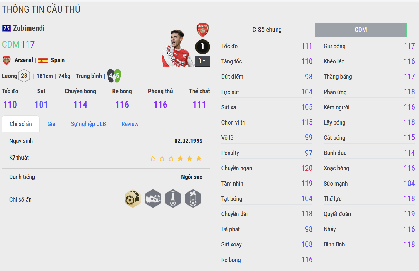Sự kỷ luật trong lối chơi cùng khả năng điều tiết trận đấu giúp Zubimendi trở thành điểm tựa đáng tin cậy nơi tuyến giữa, mang lại sự ổn định cho hệ thống chiến thuật của Arsenal.