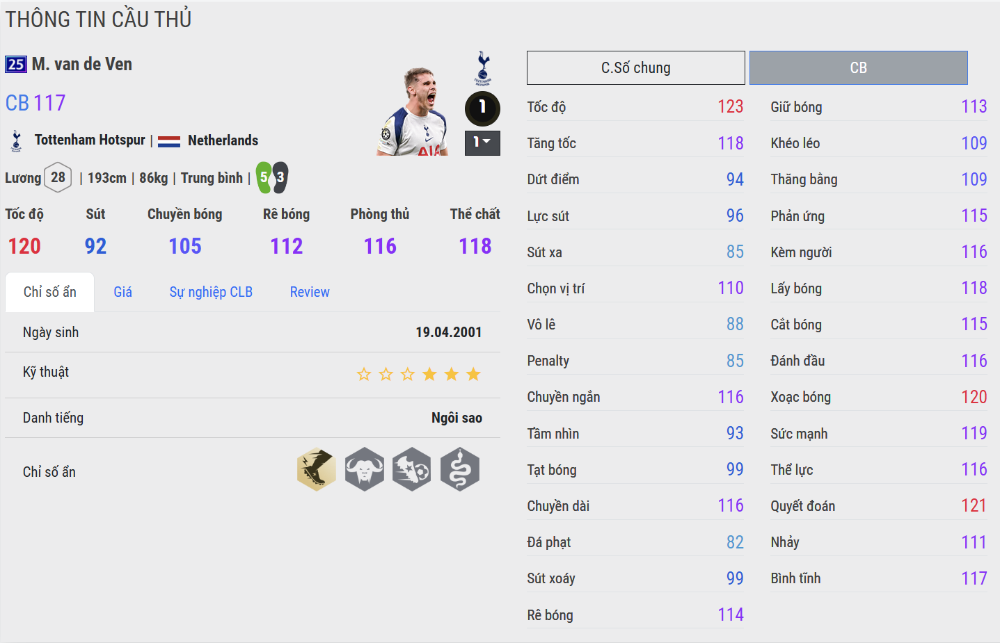 Micky van de Ven là mẫu trung vệ hiện đại nổi bật với tốc độ hiếm thấy ở một cầu thủ phòng ngự. Trong màu áo Tottenham Hotspur F.C., anh nhanh chóng gây ấn tượng nhờ khả năng bứt tốc mạnh mẽ, giúp hàng thủ luôn có phương án sửa sai khi đối mặt với các tình huống phản công.