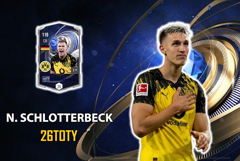 Schlotterbeck 26TOTY mang lại cảm giác cơ động rõ rệt so với nhiều trung vệ thuần thể hình. Khả năng tăng tốc quãng ngắn rất ổn, đủ để băng lên cắt đường chuyền hoặc lùi về bọc lót khi bị phản công. Trong những pha đua dài với tiền đạo nhanh, anh không hề lép vế quá nhiều. Điểm cộng lớn là khả năng xoay người tương đối linh hoạt với một CB cao lớn. Điều này giúp anh thích nghi tốt với những tình huống đảo hướng liên tục trong vòng cấm.