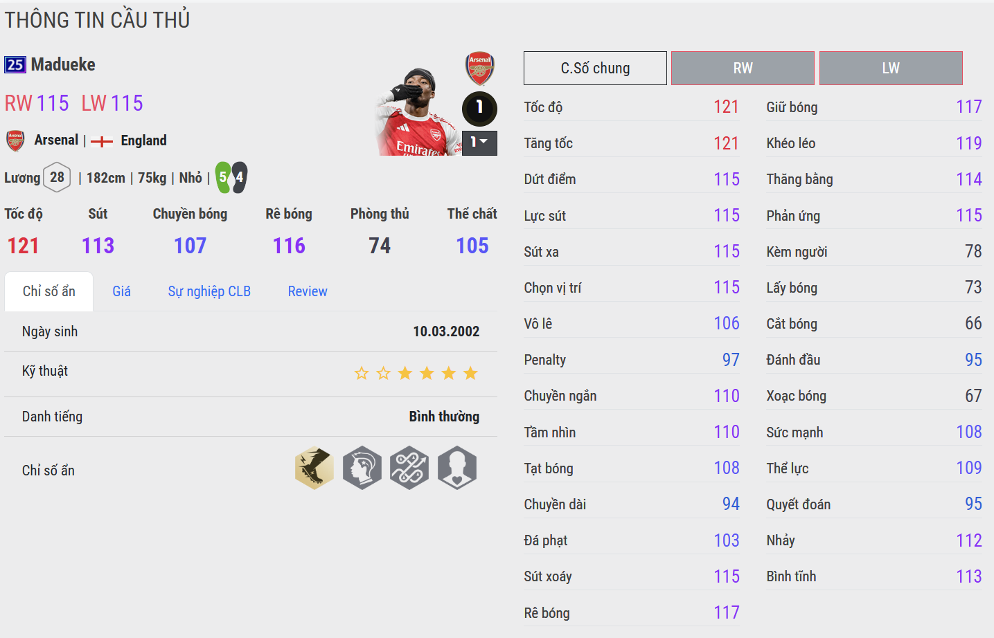 Bên cạnh kỹ thuật cá nhân, sự tự tin và tinh thần tấn công mạnh mẽ giúp Madueke trở thành một phương án giàu năng lượng, mang lại màu sắc mới cho mặt trận tấn công của Arsenal, đặc biệt trong những tình huống cần đột phá cá nhân để phá vỡ thế trận.