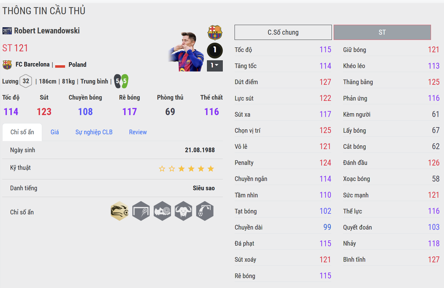 Robert Lewandowski là chuẩn mực của một trung phong đẳng cấp thế giới – nơi sự lạnh lùng, hiệu quả và tính ổn định đạt đến mức hoàn hảo. Anh sở hữu khả năng chọn vị trí thượng thừa, dứt điểm đa dạng bằng cả hai chân lẫn không chiến, cùng bản năng săn bàn khiến mọi hàng phòng ngự đều phải dè chừng.