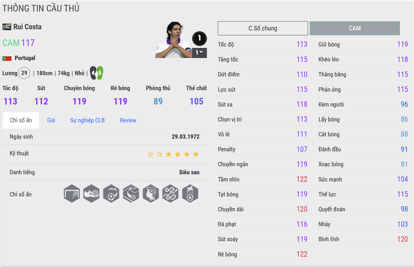 Những đường chọc khe tinh tế, các pha xử lý một chạm đầy cảm giác giúp anh mở ra không gian và tạo điều kiện cho đồng đội tỏa sáng. Rui Costa đại diện cho hình mẫu tiền vệ công cổ điển – nơi kỹ thuật, óc sáng tạo và sự thanh thoát hòa quyện, tạo nên một nhịp điệu tấn công giàu cảm xúc và đậm chất nghệ thuật.