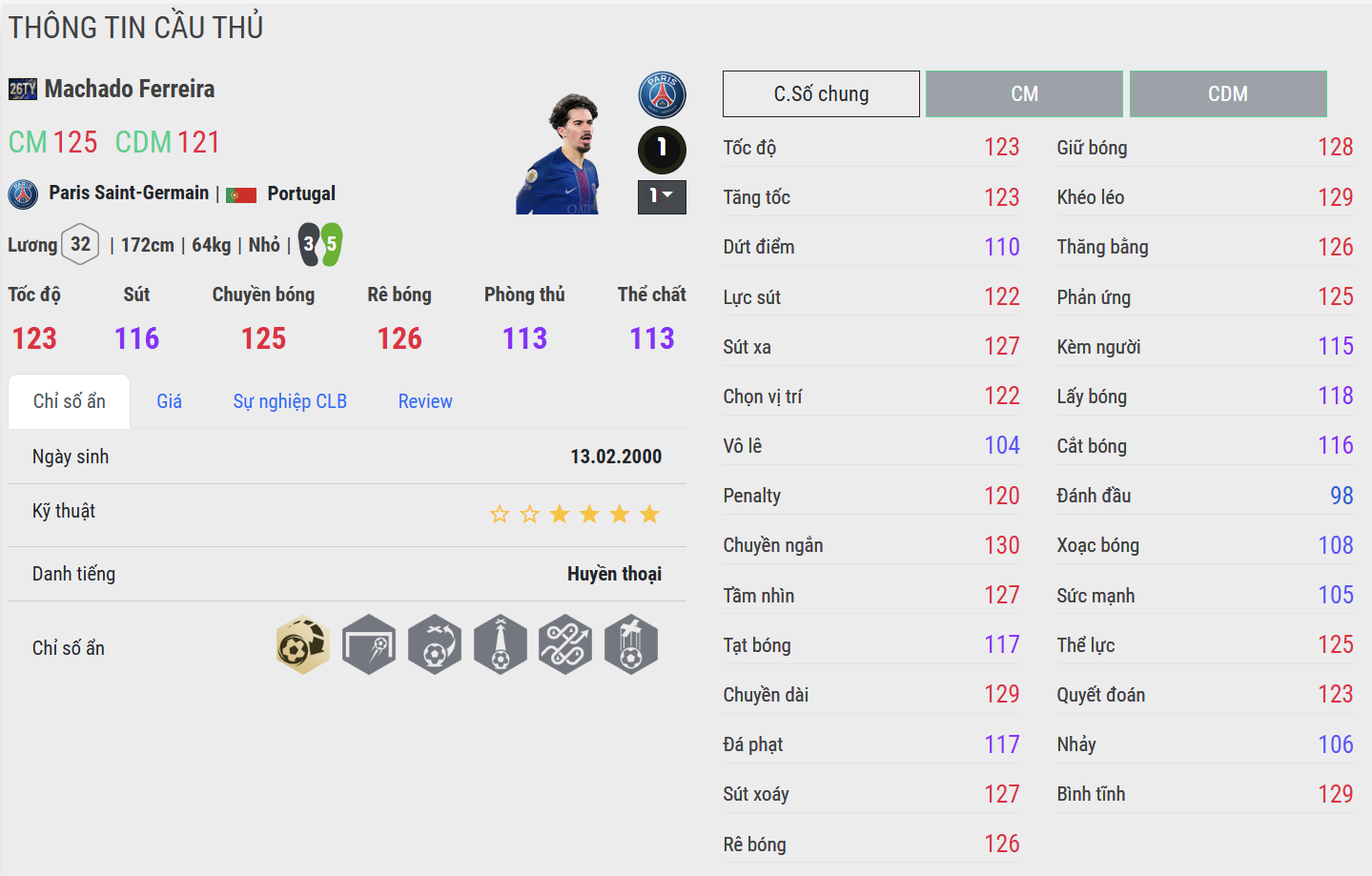Tốc độ của Vitinha 26TOTY ở mức khá, không phải mẫu tiền vệ bứt phá mạnh mẽ, nhưng bù lại là khả năng tăng tốc ngắn và đổi hướng rất tốt. Anh di chuyển linh hoạt giữa các khoảng trống, luôn sẵn sàng nhận bóng và thoát pressing bằng những bước chạy nhỏ, giúp đội hình duy trì nhịp độ cao mà vẫn kiểm soát.