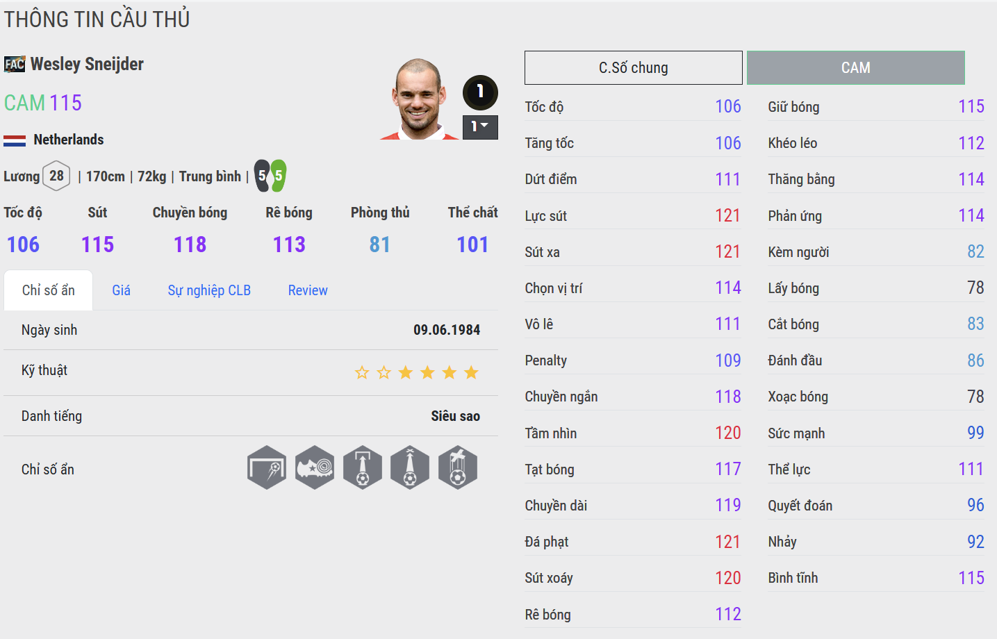 Anh hoạt động hiệu quả ở khoảng trống giữa các tuyến, nơi mỗi đường chuyền hay cú dứt điểm đều có thể định đoạt cục diện trận đấu. Điểm làm nên đẳng cấp của Sneijder nằm ở sự chính xác và bản lĩnh sân khấu lớn.