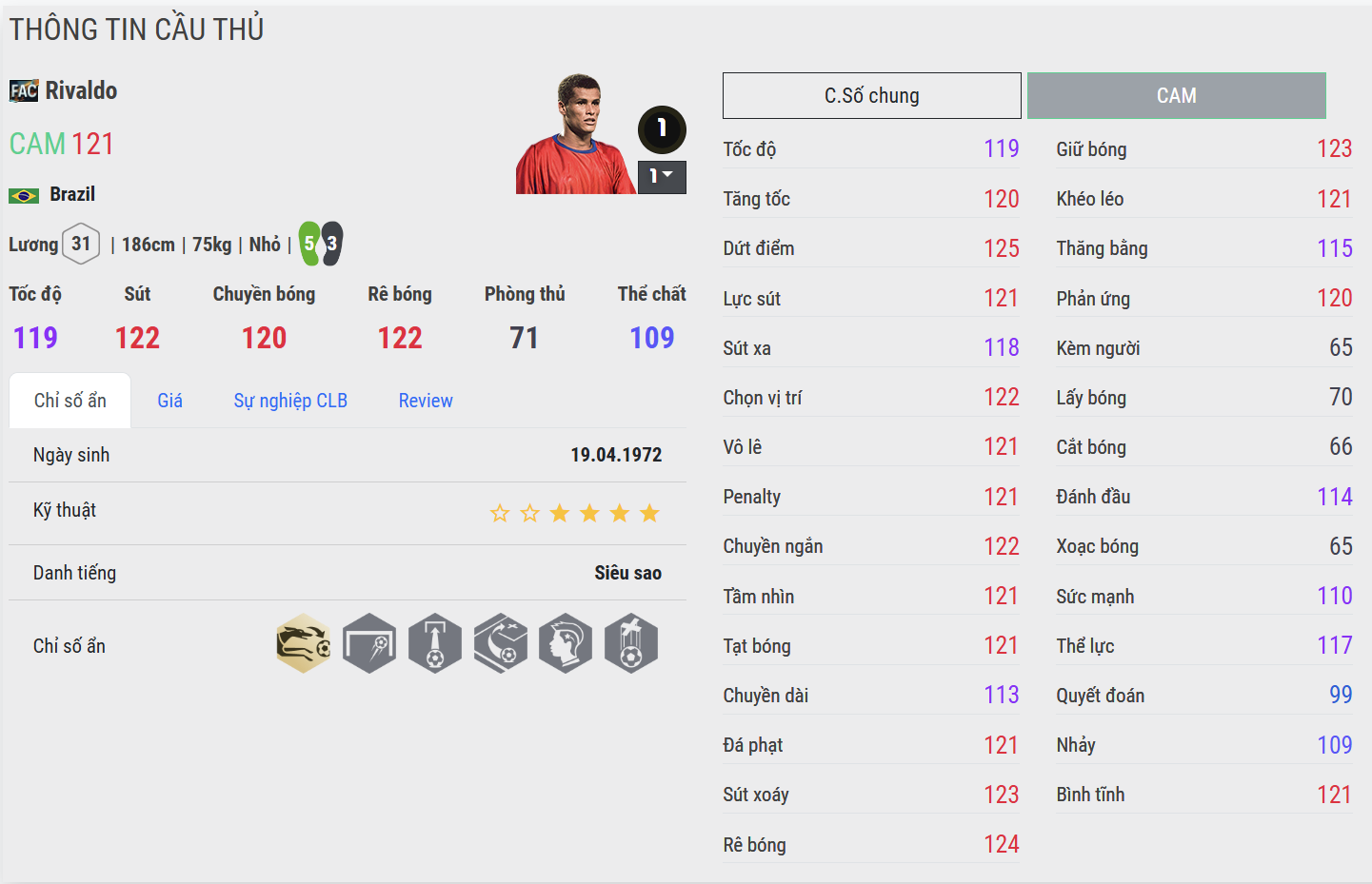 Dù có thân hình không quá đồ sộ, Rivaldo FAC lại tì đè khá chắc. Anh giữ thăng bằng tốt, không dễ bị húc văng trong các pha xoay sở và có khả năng dùng vai khéo léo để tạo khoảng trống cho cú sút. Tì đè của anh không ở mức “đầm” như tiền đạo cắm, nhưng quá đủ cho lối đá CAM/LW thiên hướng kỹ thuật.
