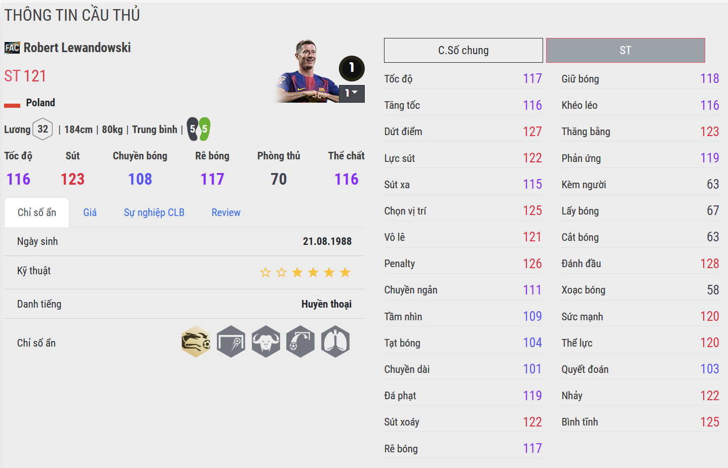 Lewandowski FAC tì đè xuất sắc: thân người nặng, trụ vững và áp lực lên CB rất rõ ràng. Anh xoay người mạnh mẽ trong thế quay lưng và có thể giữ bóng trong thời gian dài để chờ đồng đội băng lên. Khi chạy, anh cũng ít bị húc văng, tạo cảm giác “mình đồng da sắt” đúng chất một trung phong số 9 cổ điển.