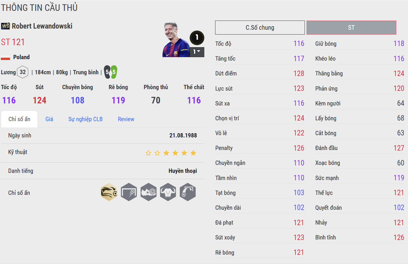 Thể hình rắn rỏi cùng khả năng giữ thăng bằng tốt giúp Lewandowski WS cực kỳ lợi hại trong tranh chấp. Anh có thể tì người, xoay lưng che bóng và thậm chí thắng cả những trung vệ “trâu bò” nhất game. Khi cần, anh còn có thể tự tạo khoảng trống bằng cú hích vai nhẹ rồi tung ra pha dứt điểm quyết định. Đây là kiểu tiền đạo không chỉ ghi bàn, mà còn làm bệ phóng cho cả hàng công.