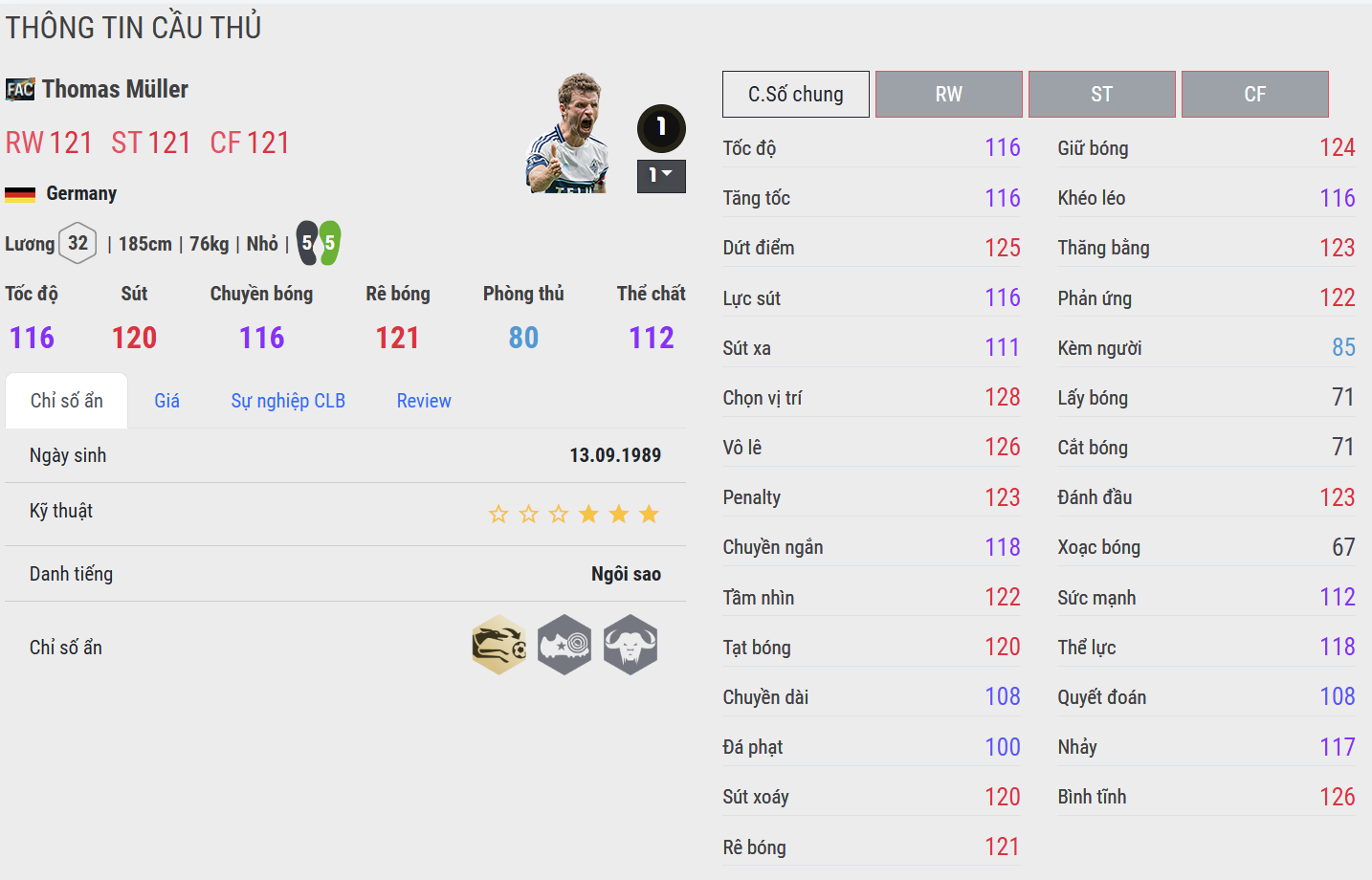 Müller chơi bóng không cầu kỳ, và chính điều đó làm cho những đường chuyền trở nên đặc biệt: chính xác, nhẹ nhàng và tiết tấu rất hợp lý. Các pha ban bật 1 chạm cho ST, mở biên hoặc đặt đồng đội vào vị trí thuận lợi diễn ra mượt mà. QW không quá xuất sắc như những CAM kỹ thuật, nhưng mức độ ổn định cao, ít lỗi và rất hợp lối chơi kiểm soát.
