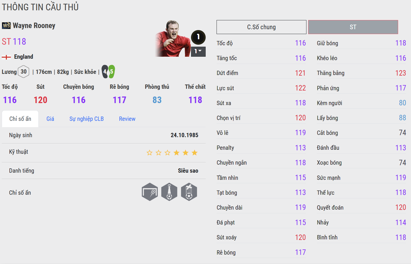 Rooney WS không phải mẫu cầu thủ sở hữu tốc độ “xé gió”, nhưng cảm giác bứt nhịp đầu nhanh và mạnh giúp anh cực kỳ hiệu quả trong các pha thoát kèm hay xâm nhập vòng cấm. Anh di chuyển rất thông minh, thường xuyên chọn hướng chạy chéo vào khoảng trống khiến hậu vệ đối phương lúng túng. Cảm giác tăng tốc của Rooney không mượt như Mbappé hay Vinicius, nhưng bù lại, anh luôn duy trì tốc độ cao ổn định trong quãng dài – rất phù hợp cho các tình huống phản công có chiều sâu.