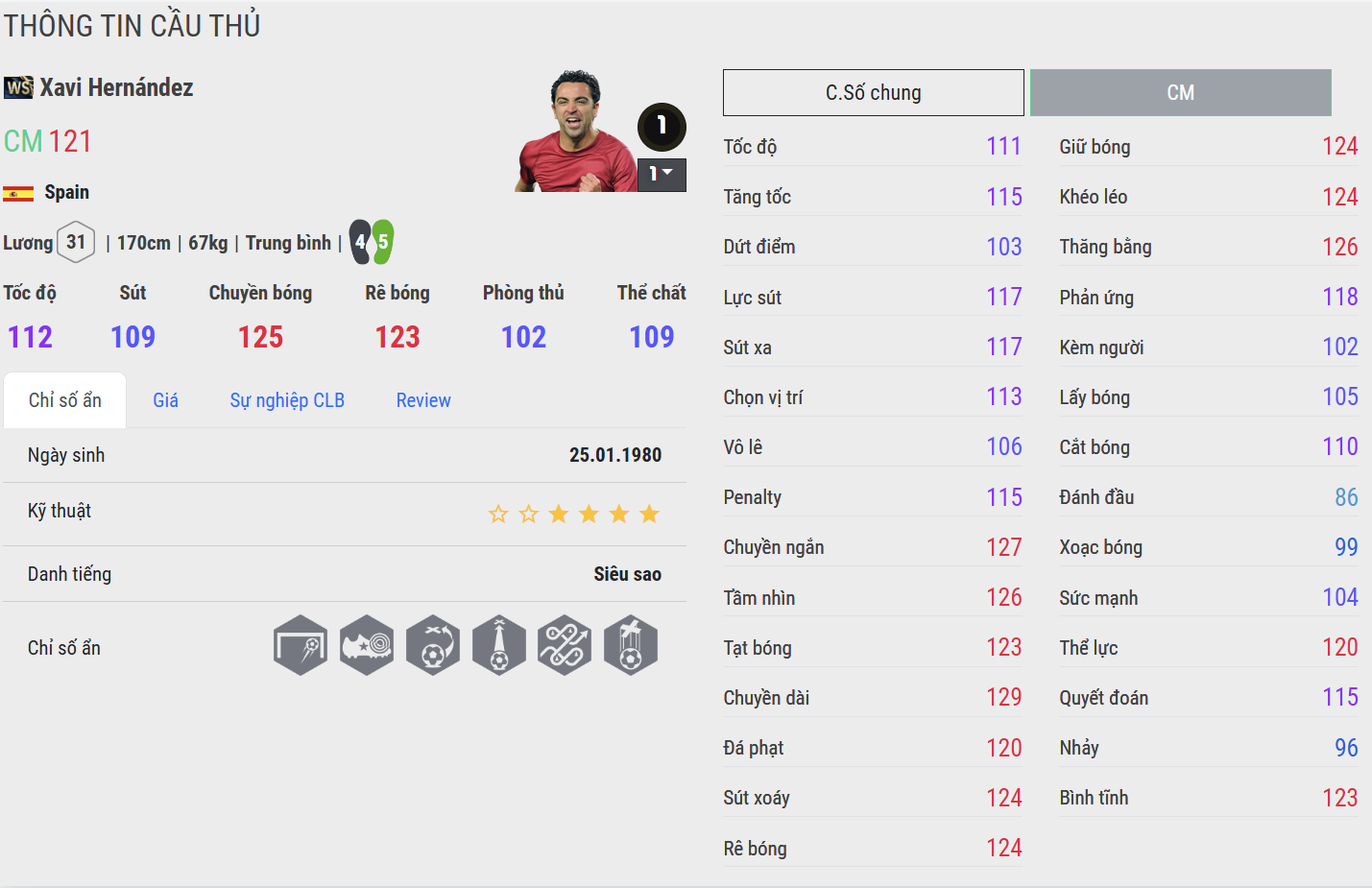 Với Xavi WS, tốc độ không nằm ở đôi chân, mà ở tư duy. Anh không bứt phá như những tiền vệ hiện đại, nhưng khả năng chọn vị trí, đón bóng và xoay người cực nhanh giúp anh gần như luôn chiếm thế chủ động trong mọi pha bóng. Cảm giác chạm bóng đầu tiên gọn gàng và chuẩn xác khiến anh thoát pressing tốt hơn nhiều so với con số tốc độ trên thẻ. Trong tay người chơi có tư duy kiểm soát, tốc độ của Xavi là “vừa đủ để làm chủ không gian”.